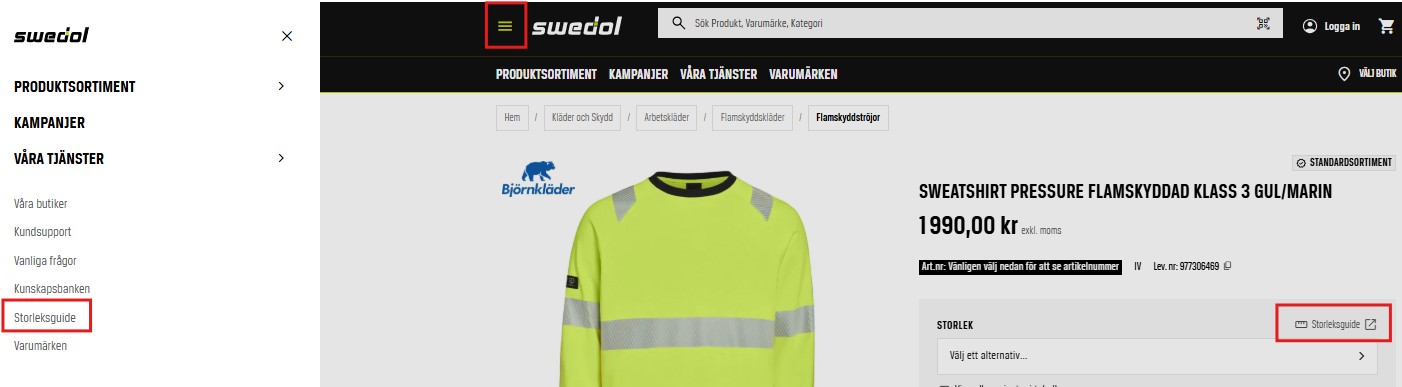 expand_moreDu hittar alla storleksguider i menyn uppe till vänster alternativt direkt på en produkt.