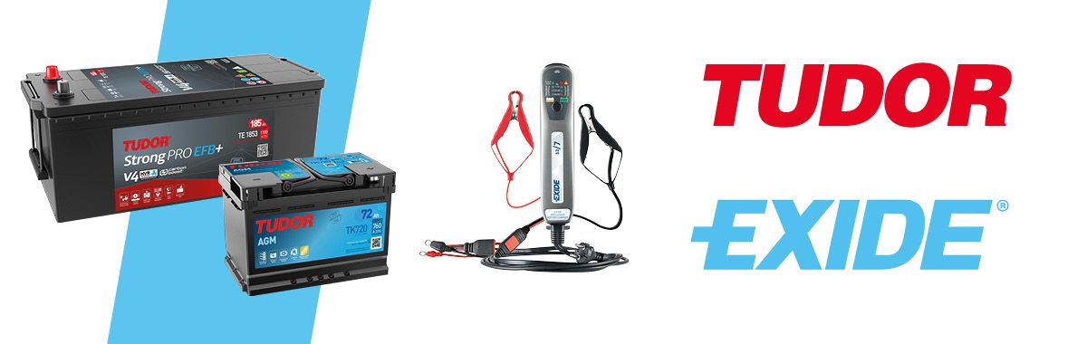 Vårt batterisortiment, med Tudor och Exidebatterier, täcker de flesta behov.